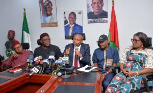 Commissioner for Information Prince Okey Kanu, his Labour & Productivity counterpart Mr Kingsley Nwokocha and the Senior Special Assistant on Labour Relations, Sir Comrade Godson Ańucha were present at the briefing.